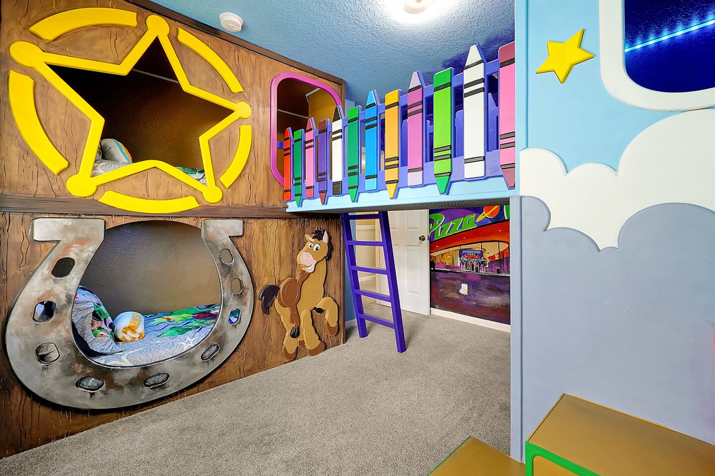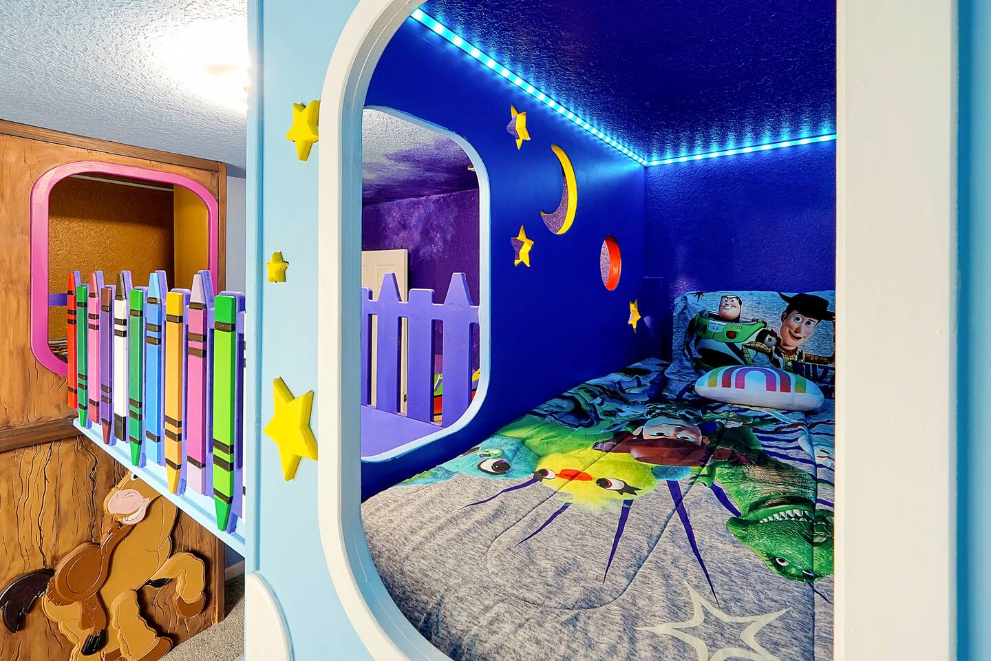 ✹Bedroom 5 (main floor): Toy Story-themed room, 2 twin-over-twin bunk beds