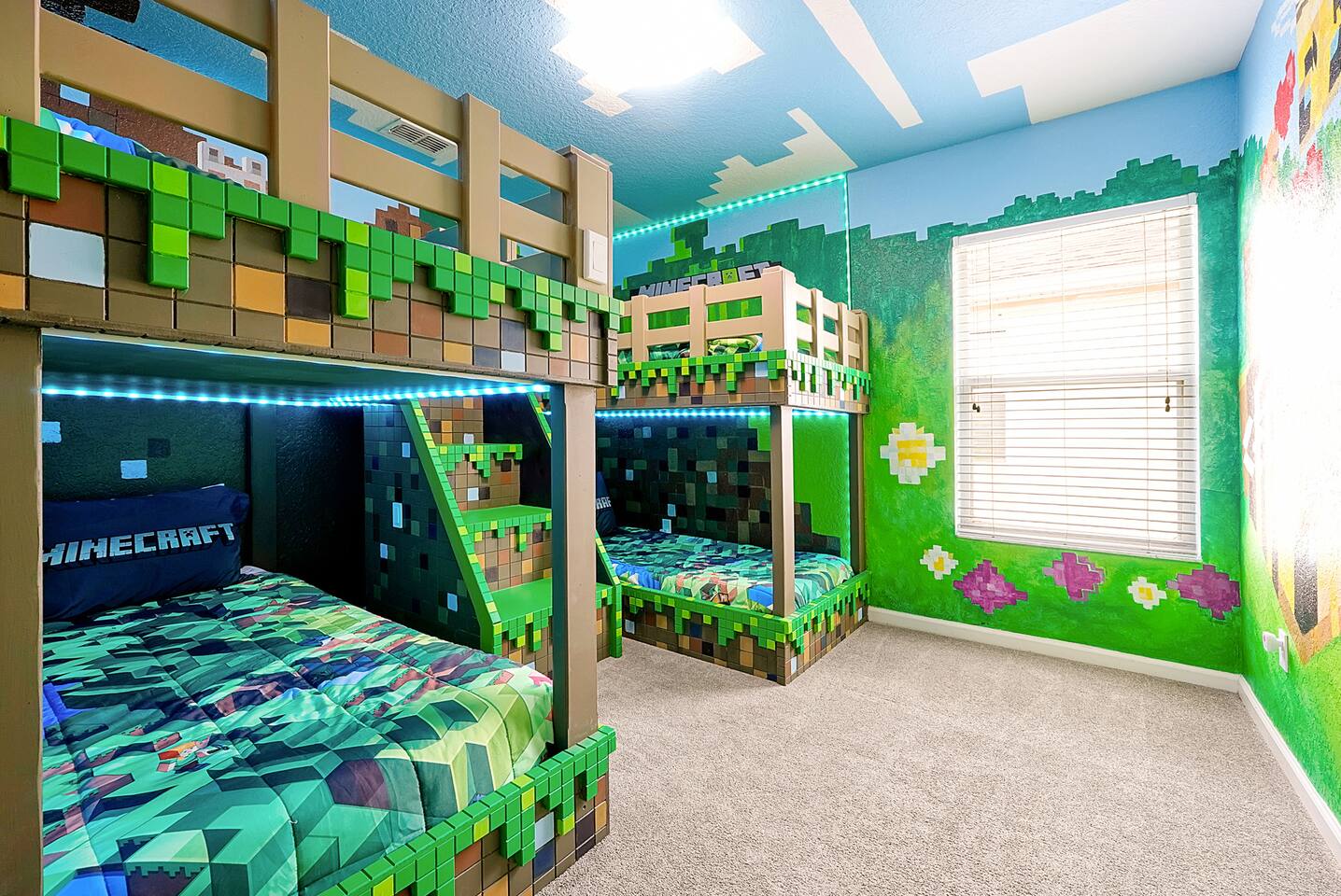 ✹Bedroom 4 (main floor): Minecraft room, 2 twin-over-twin bunk beds